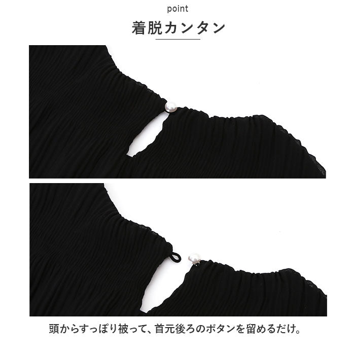 ・透け感のあるシアー素材を重ねた程よいフリルデザインで、上品な印象に♪