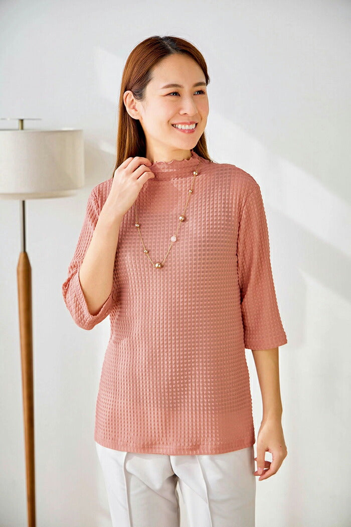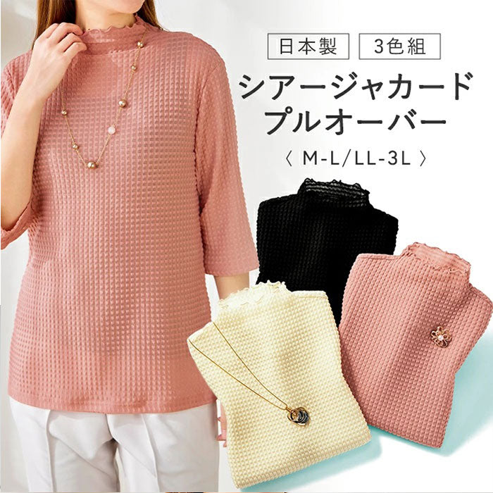 プルオーバー レディース 通販 日本製 ジャカードプルオーバー レディースプルオーバー カジュアル シンプル 半袖 カットソー トップス 動きやすい 快適 女性 大人 ミセス
