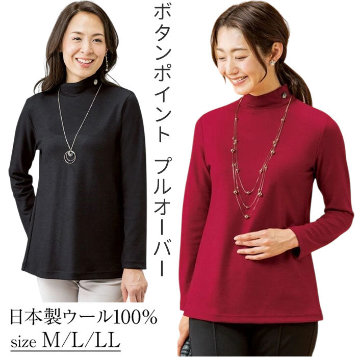 プルオーバー 長袖 レディース 960978 通販 日本製 レディースプルオーバー カットソー シャツ ウール ボタンポイント カジュアル 上品 女性 動きやすい 快適 大人 春 秋 冬 トップス