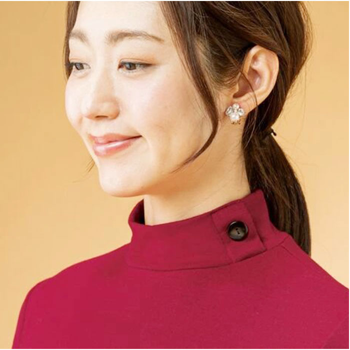 ・衿ぐりの大きめなボタンをアクセントにしたハイネックデザインプルオーバー