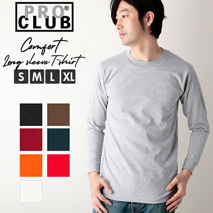 プロクラブ ロンt 通販 tシャツ メンズ 長袖 pro club 119 黒 ブラック おしゃれ 長袖tシャツ 大きいサイズ 無地 トップス 綿100 シンプル コンフォート グレー ビッグサイズ Sサイズ 小さめ 大きめ XL 大きいサイズ