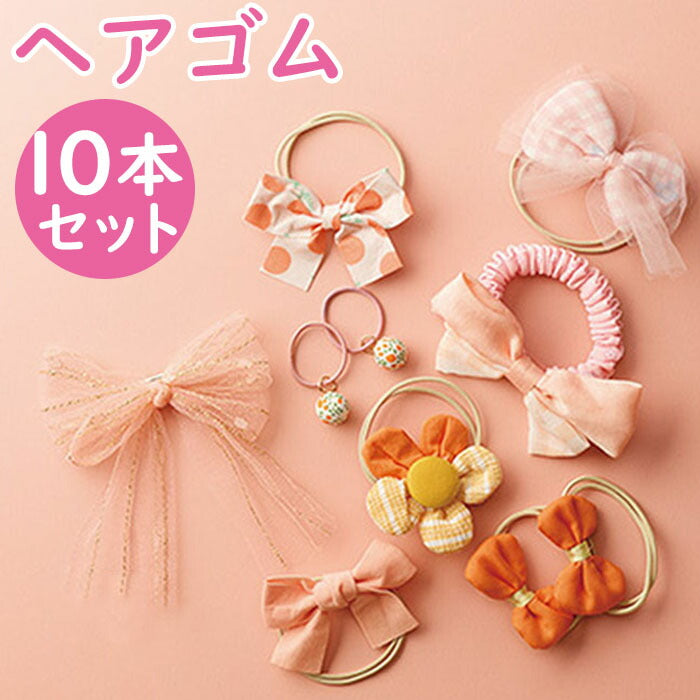 オレンジ系ヘアゴム&ヘアクリップ 10個セット