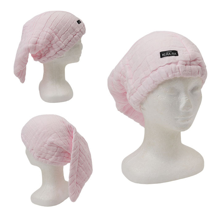・ふんわりやわらか5重ガーゼ「sweetKIRARAヘアキャップ」。