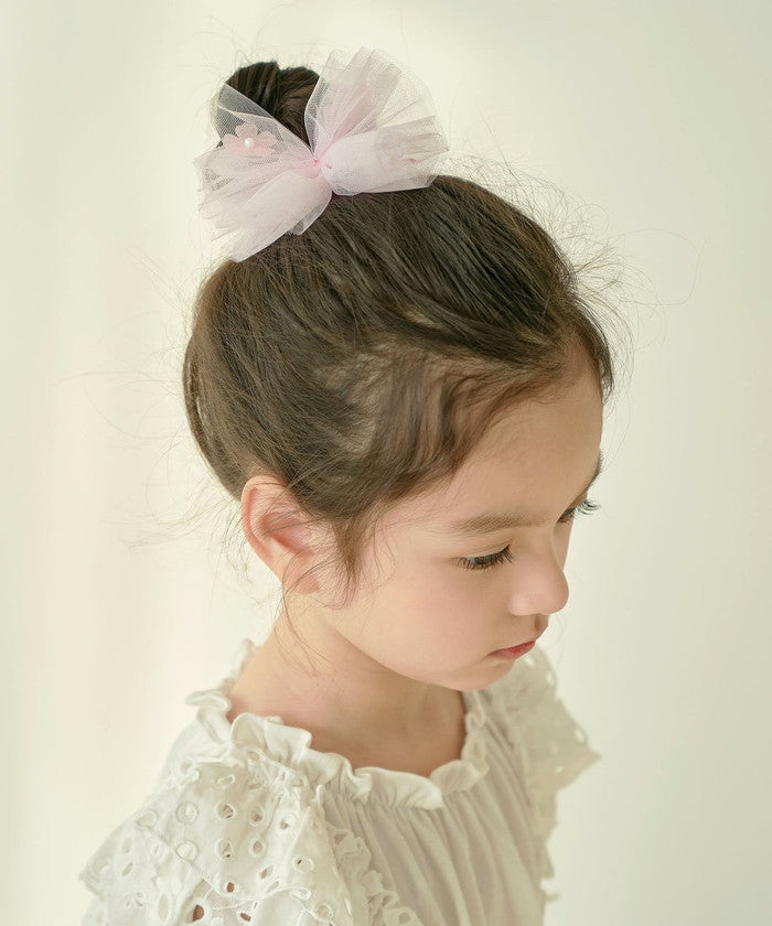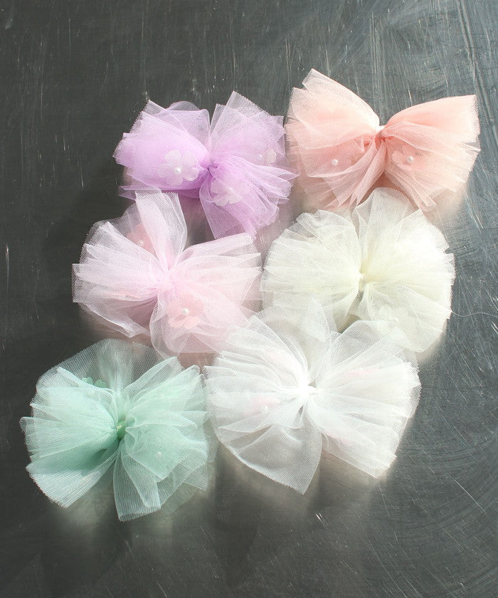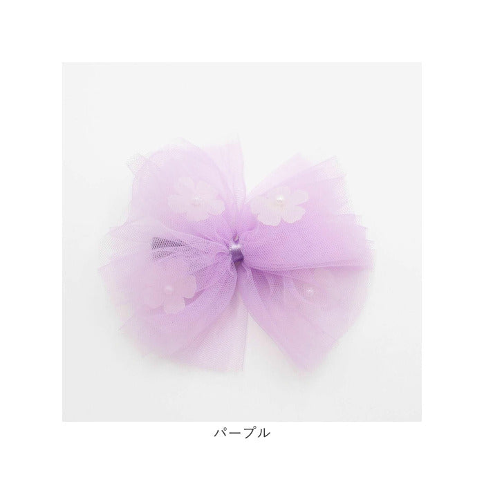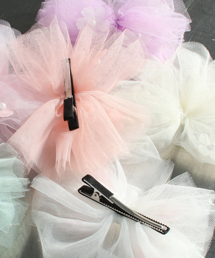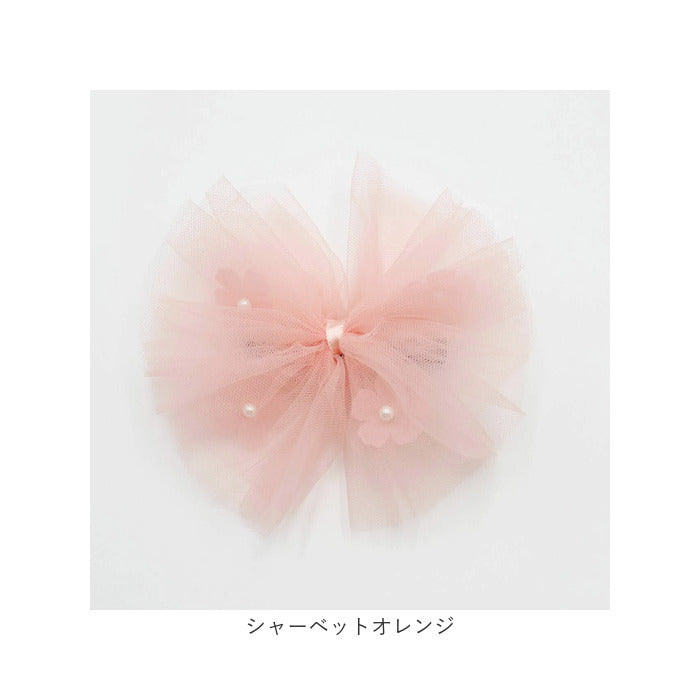 ・蝶々のようなふんわりチュールが涼し気で可愛らしい子供服Roraベティチュールリボンヘアクリップです☆