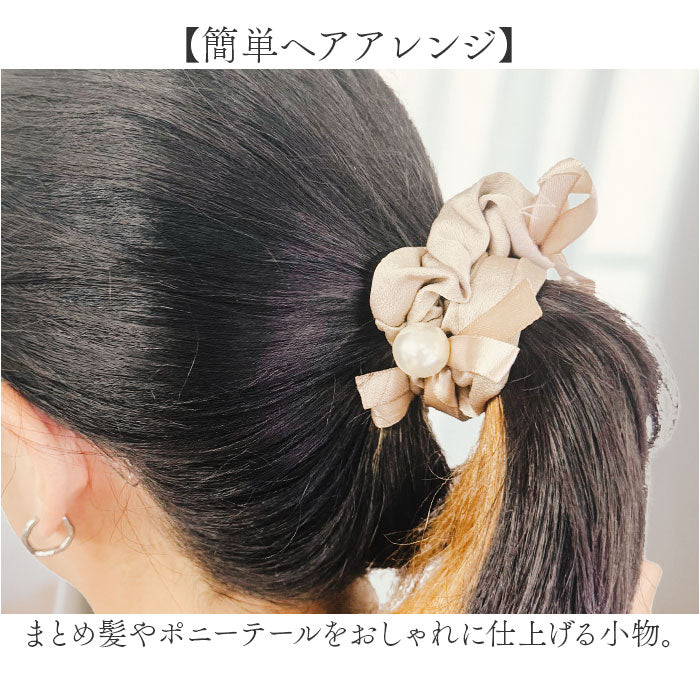 ヘアゴム 大人 パール リボン 通販 シュシュ 髪ゴム ヘア ゴム ヘアアクセサリー ヘアアクセ まとめ髪 髪留め レディース 大人っぽい 跡がつかない 痛くない 上品 高見え オフィス