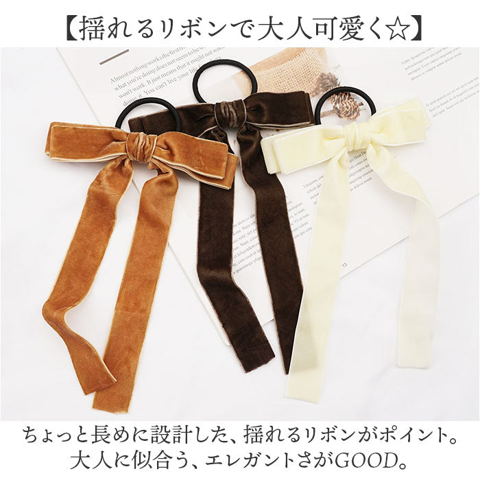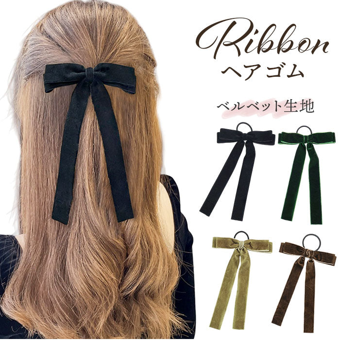 ヘアリボン 通販 ロングリボン リボン ベロアリボン ベロア ヘアゴム ヘアアクセサリー 髪飾り ポニーテール 大人 女性 かわいい おしゃれ ヘアアレンジ 卒業式 入学式 シンプル 結婚式