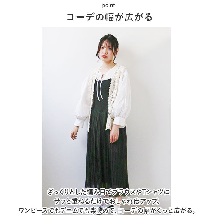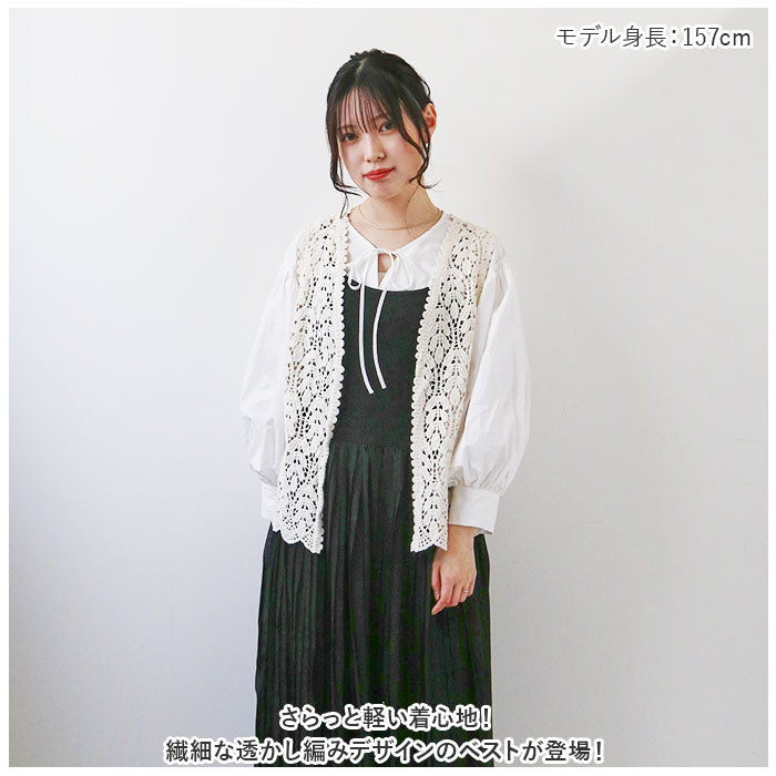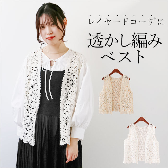 ・さらっと軽い着心地!繊細な透かし編みデザインのベストが登場!