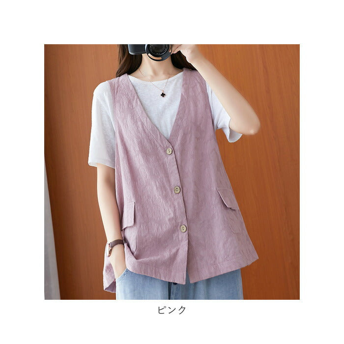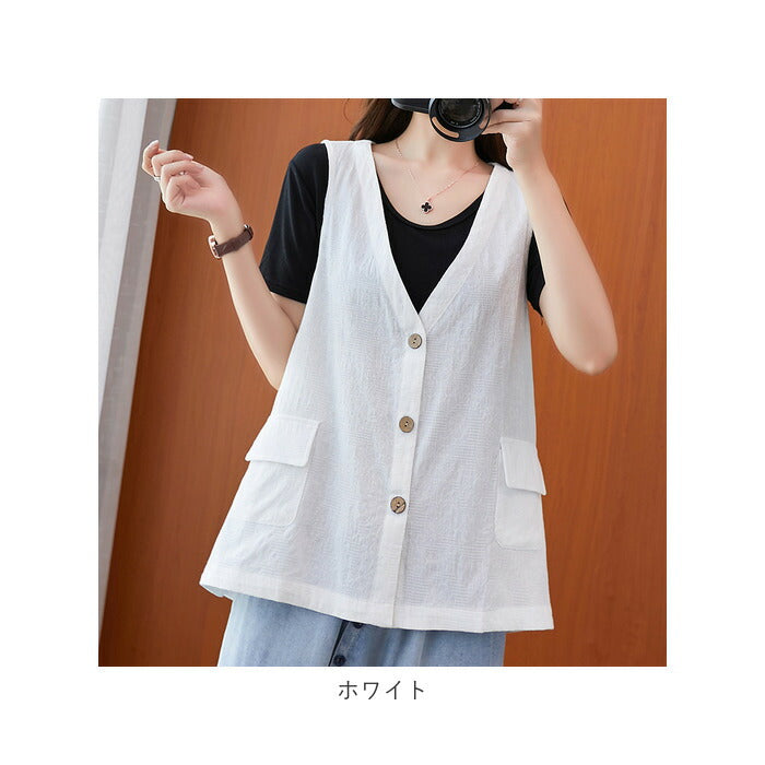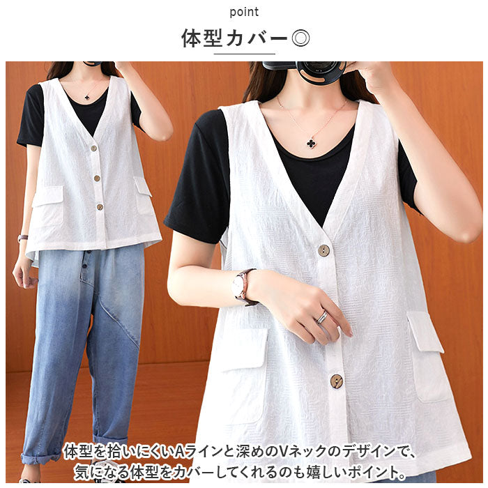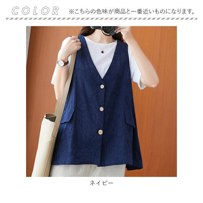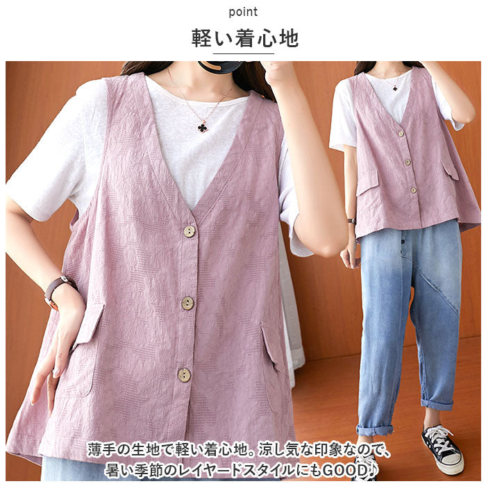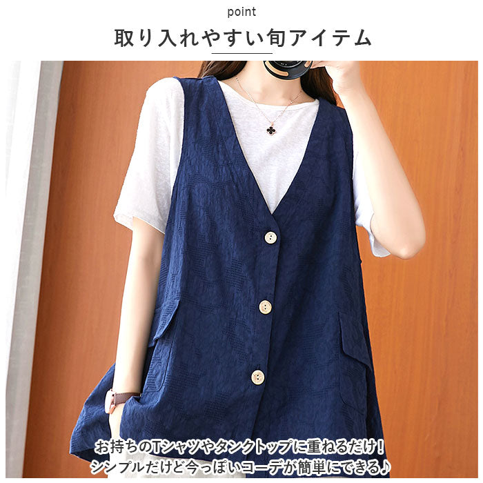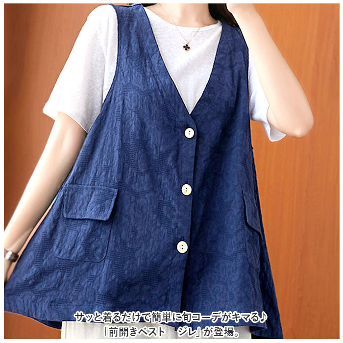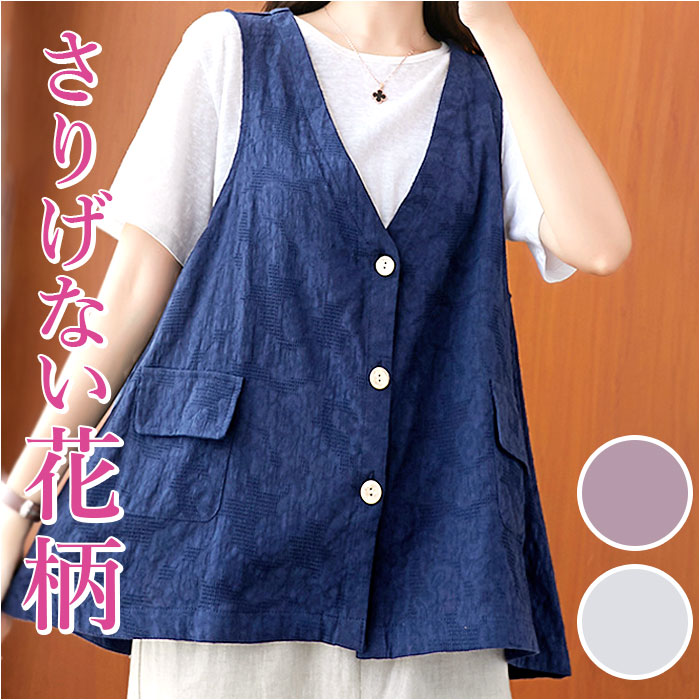 ベスト ジレ 前開き 通販 レディース 羽織り 重ね着 レイヤード ノースリーブ vネック aライン ゆったり 体型カバー カジュアル 春 夏 花柄 おしゃれ オフィス