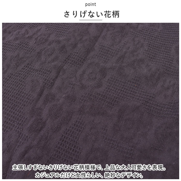 ・主張しすぎないさりげない花柄模様で、上品な大人可愛さを表現。カジュアルだけど女性らしい、絶妙なデザイン。