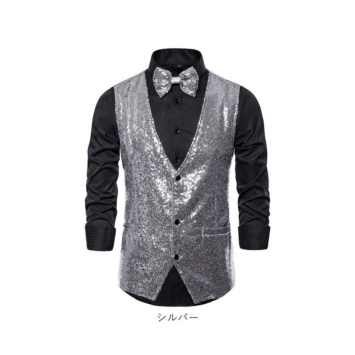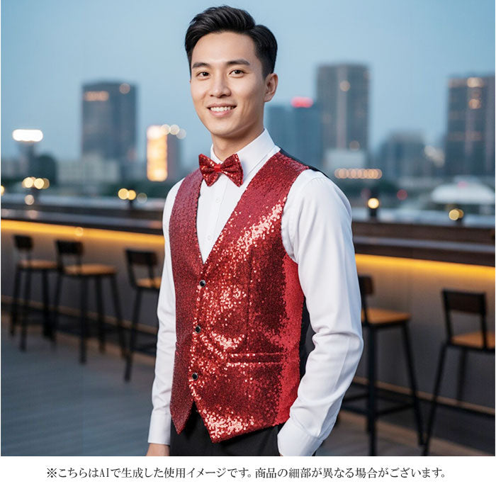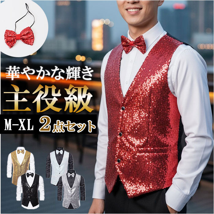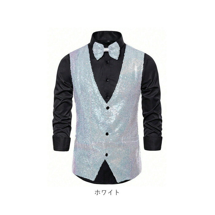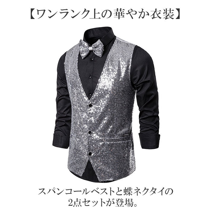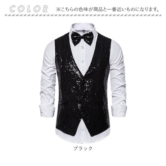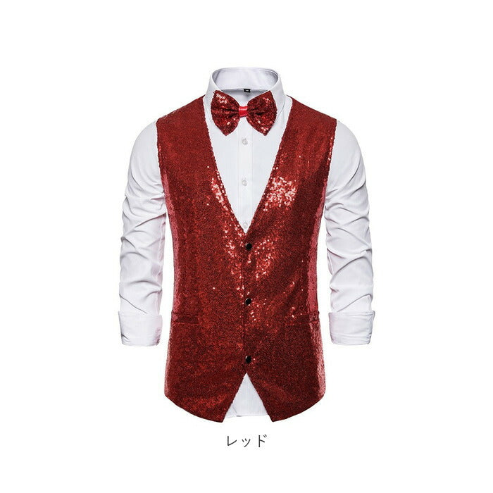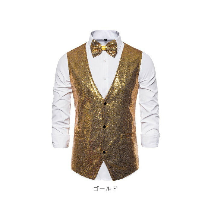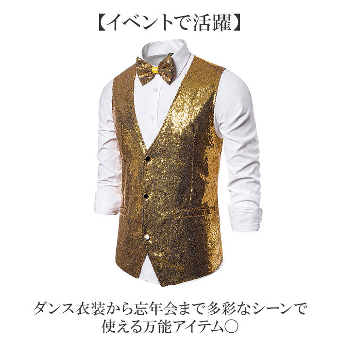 ベスト 蝶ネクタイ スパンコール 通販 チョッキ ジレ ウェストコート ダンス衣装 ステージ衣装 舞台衣装 忘年会 新年会 パーティー 司会 コスプレ ハロウィン メンズ レディース