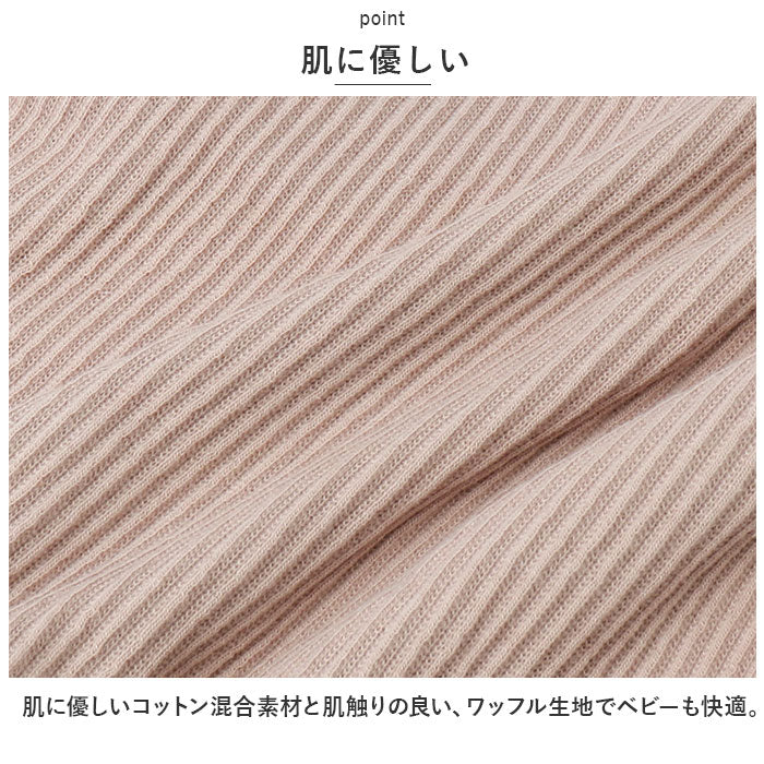 ・肌に優しいコットン混合素材と肌触りの良い、ワッフル生地でベビーも快適。