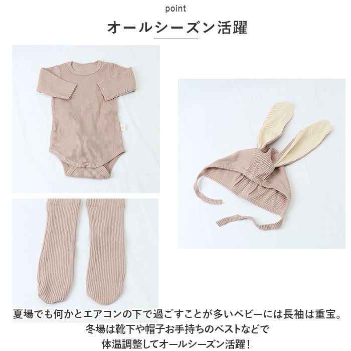 ・夏場でも何かとエアコンの下で過ごすことが多いベビーには長袖は重宝。冬場は靴下や帽子、お手持ちのベストなどで体温調整してオールシーズン活躍!