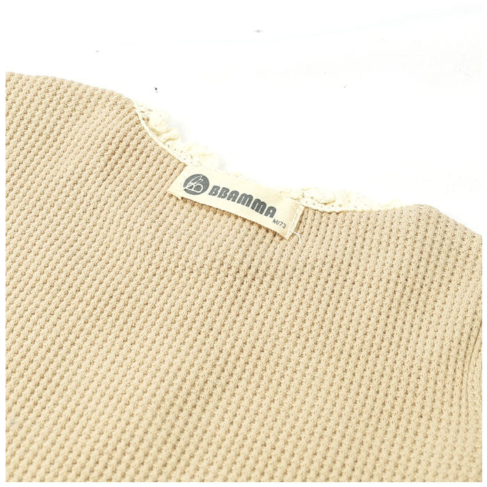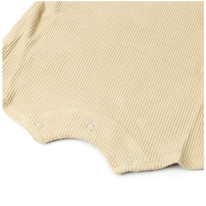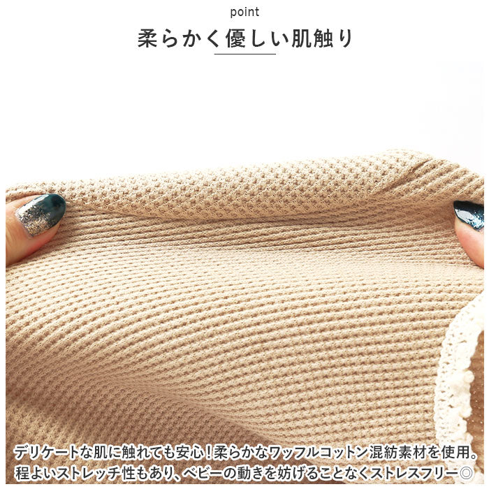 ・デリケートな肌に触れても安心!柔らかなワッフルコットン混紡素材を使用。程よいストレッチ性もあり、ベビーの動きを妨げることなくストレスフリー◎