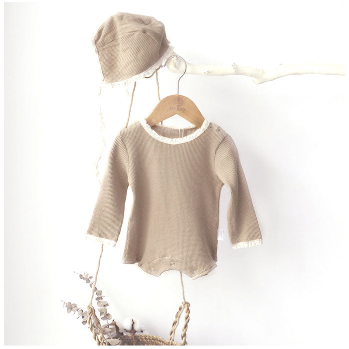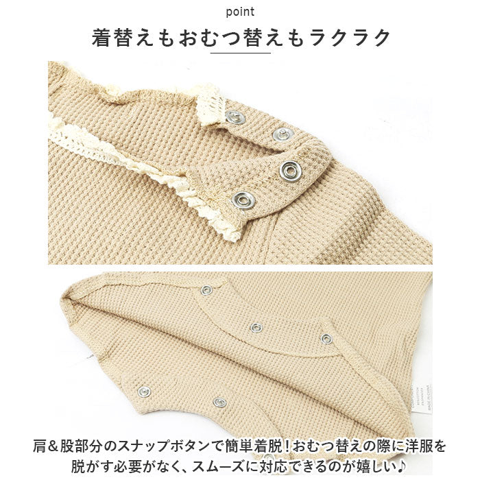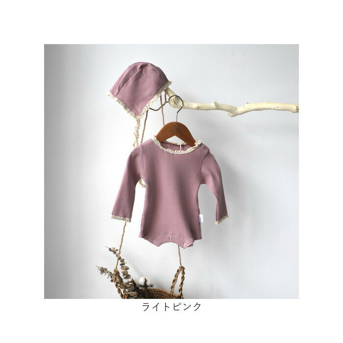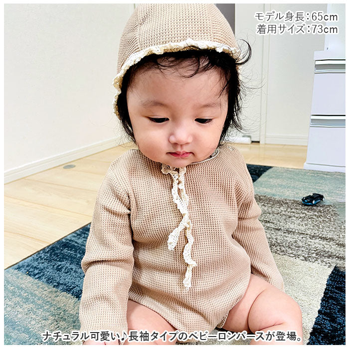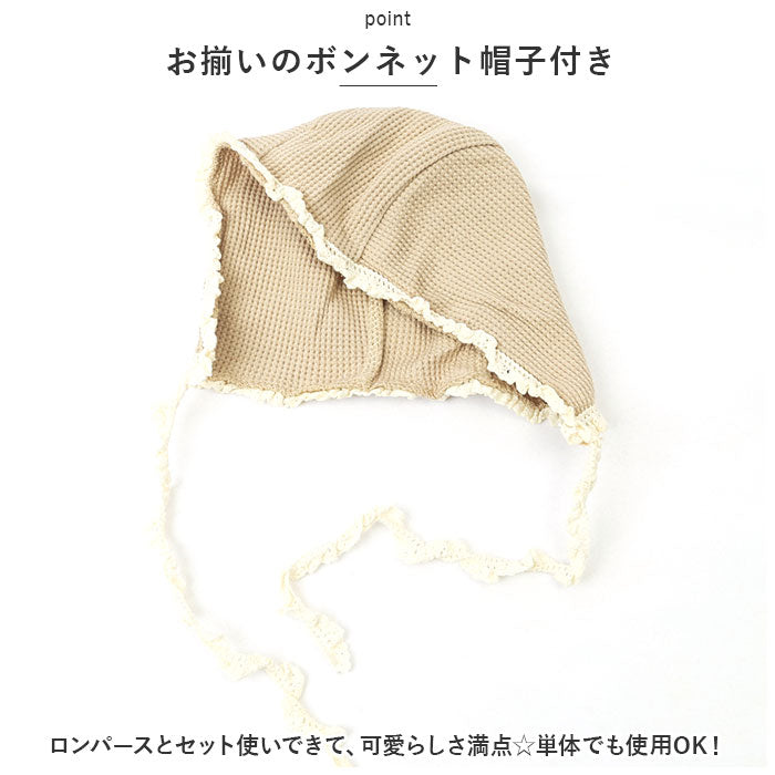 ベビー服 ロンパース 通販 カバーオール ワッフルロンパース ベビーロンパース 長袖 セット 帽子付き 帽子 ボンネット 綿 コットン レース ベビー 子供服 赤ちゃん 新生児