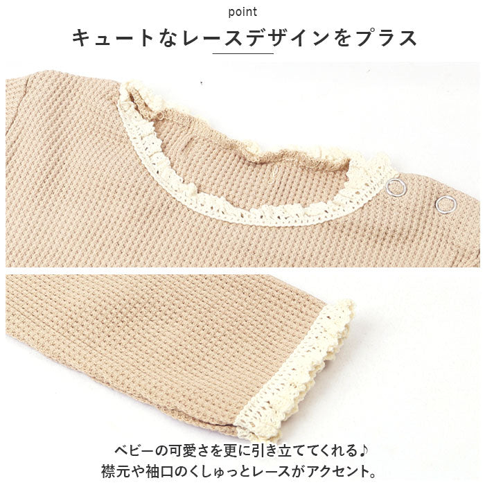 ・ベビーの可愛さを更に引き立ててくれる♪襟元や袖口のくしゅっとレースがアクセント。