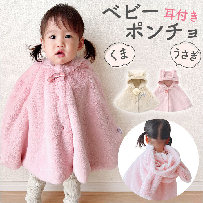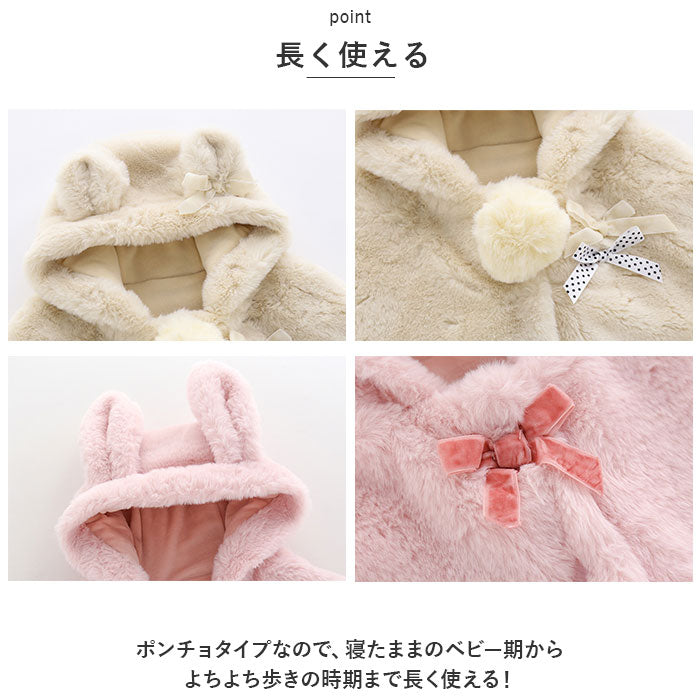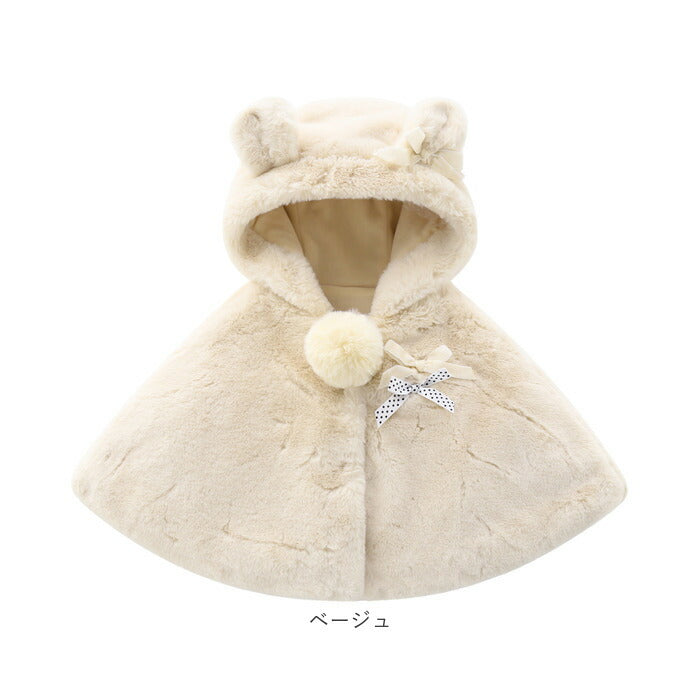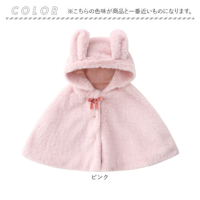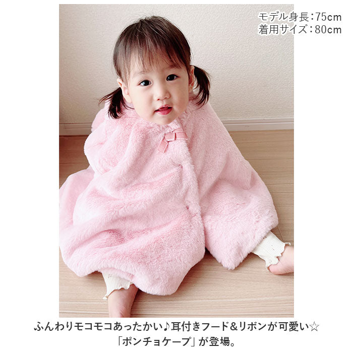 ベビー服 女の子 通販 前あき ケープ マント コート ポンチョ アウター 袖なし フード付き ボレロ おしゃれ ふわふわ もこもこ 防寒ウエア 暖かい 防寒ウェア 秋冬 上着 外出服 無地
