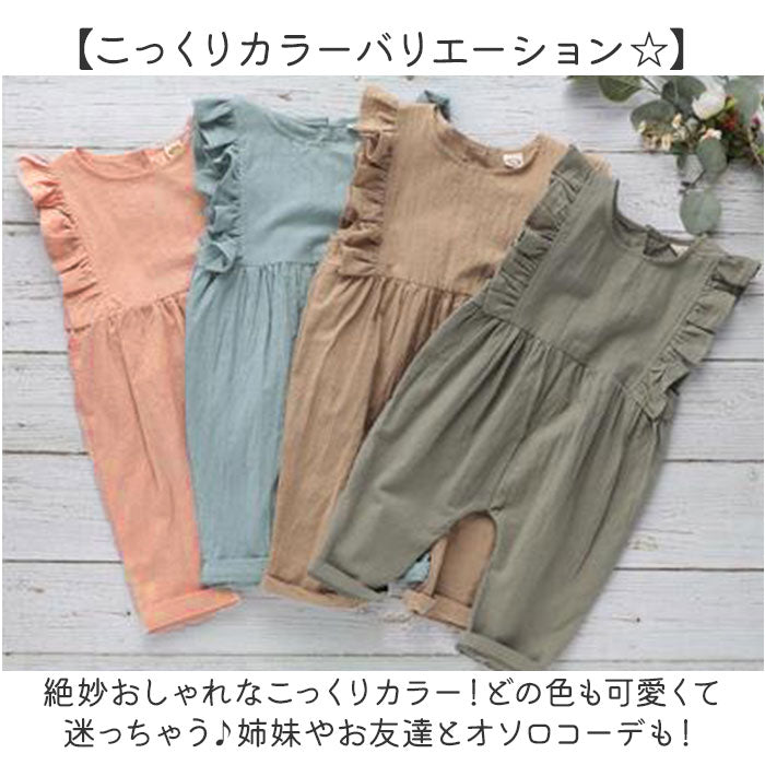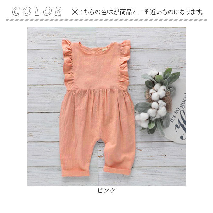 ベビー オールインワン 通販 サロペット キッズ カバーオール ロンパース オーバーオール 赤ちゃん あかちゃん ベビー服 ノースリーブ 女の子 袖 フリル 男の子 おしゃれ かわいい 綿