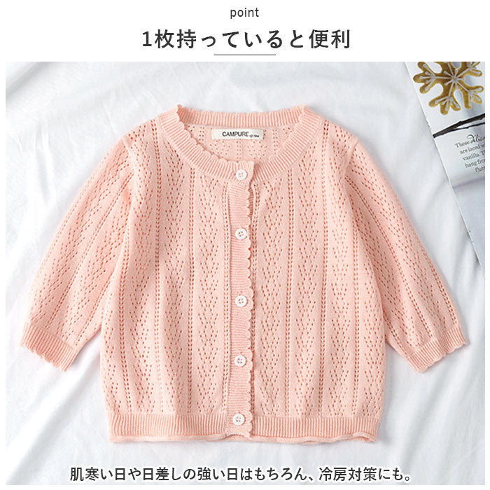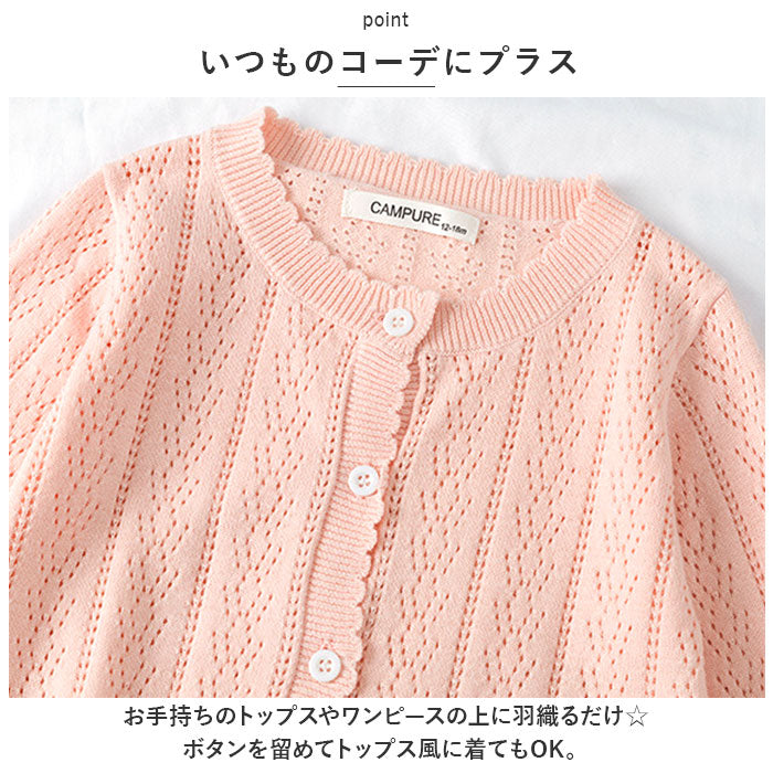 ベビー カーディガン 通販 ボレロ ニットカーディガン 上着 ベビー服 羽織り アウター トップス 透かし柄 ベビーウェア オールシーズン 温度調整 赤ちゃん 女の子 体温調整 冷房対策
