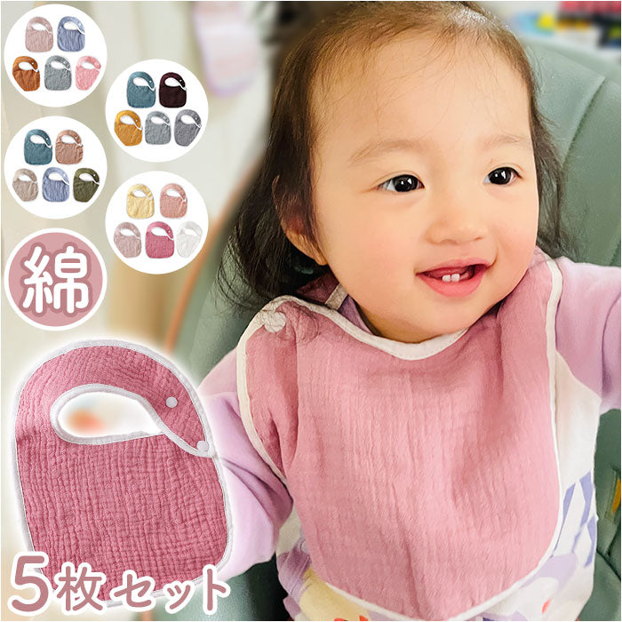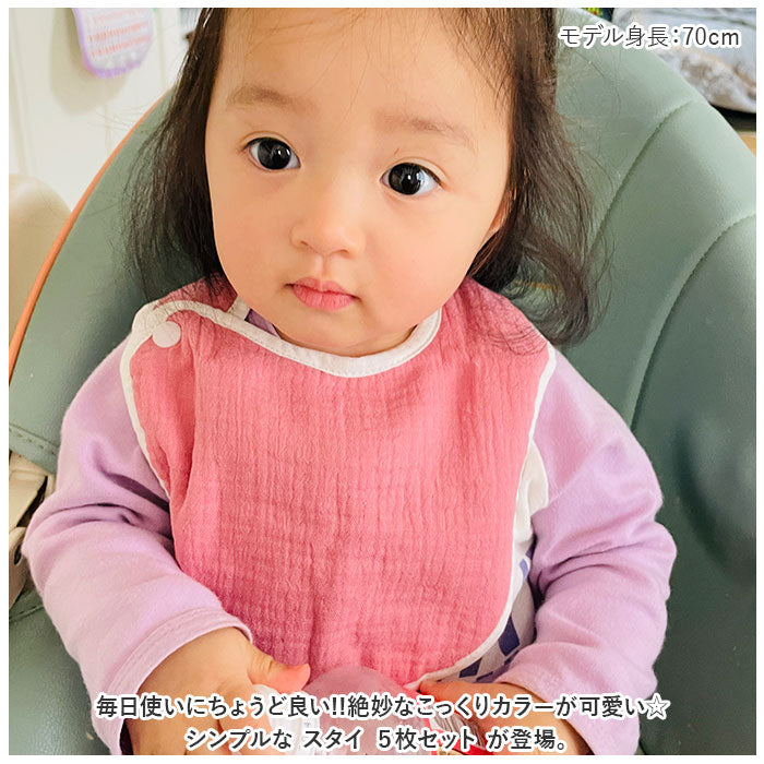 ベビー スタイ よだれ掛け 通販 よだれかけ 前かけ 5枚セット セット お食事エプロン ベビービブ 綿 コットン 吸収性 スナップ 無地 シンプル ナチュラル 保育園 幼稚園 お出かけ 食事