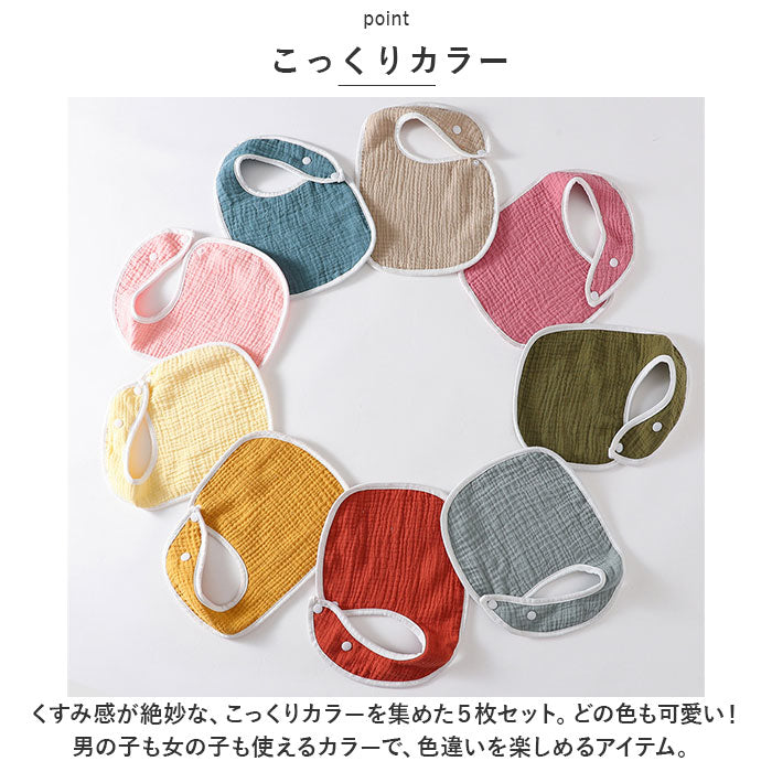 ・毎日使いにちょうど良い!!絶妙なこっくりカラーが可愛い☆シンプルな スタイ 5枚セット が登場。