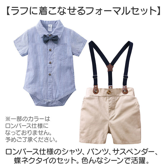 ベビー フォーマル 男の子 スーツ 通販 ベビーセットアップ ベビースーツ セットアップ 上下セット ロンパース 半袖 蝶ネクタイ 半ズボン ショートパンツ 赤ちゃん ベビー服 入園式