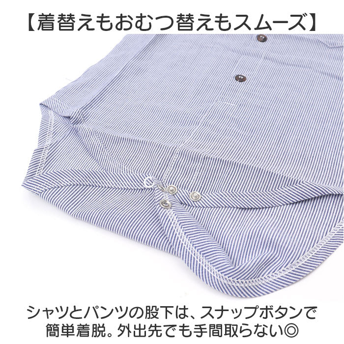 ・シャツとパンツの股下は、スナップボタンで簡単着脱。外出先でも手間取らない◎