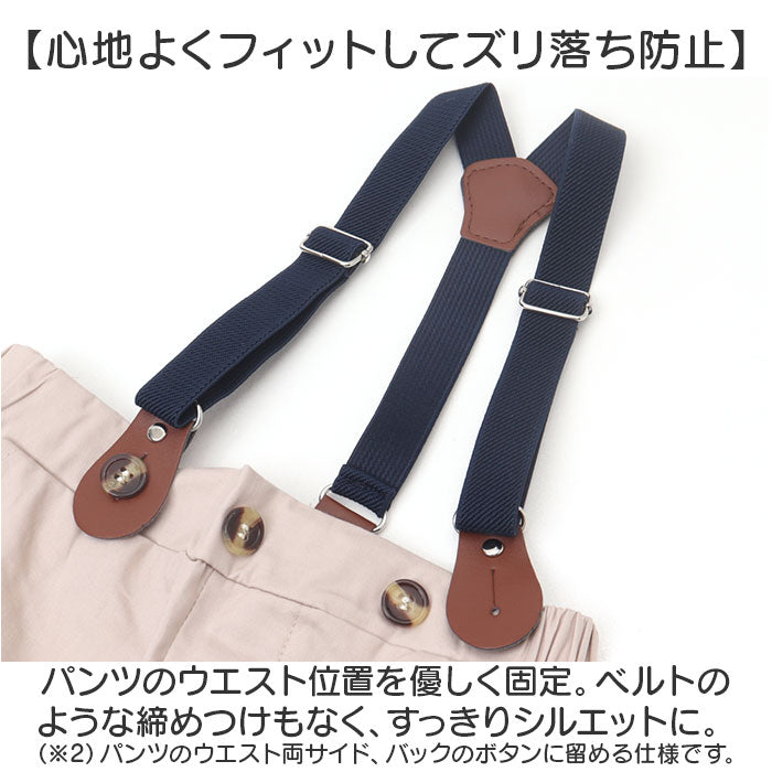 ・ロンパース仕様のシャツ、パンツ、サスペンダー、蝶ネクタイのセット。色んなシーンで活躍。