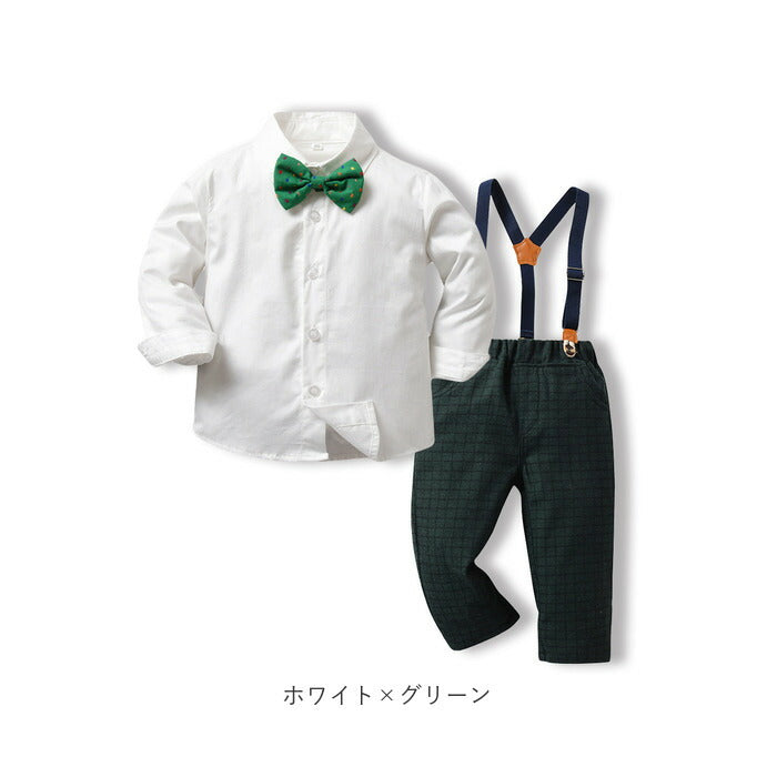 ベビー フォーマル 男の子 長袖 通販 ベビー服 赤ちゃん キッズ セット 上下セット シャツ 蝶ネクタイ リボン パンツ ズボン サスペンダー ズボン吊り パンツセット 子供服 入学式 卒園式