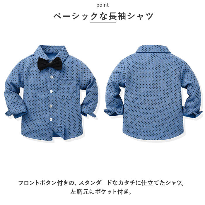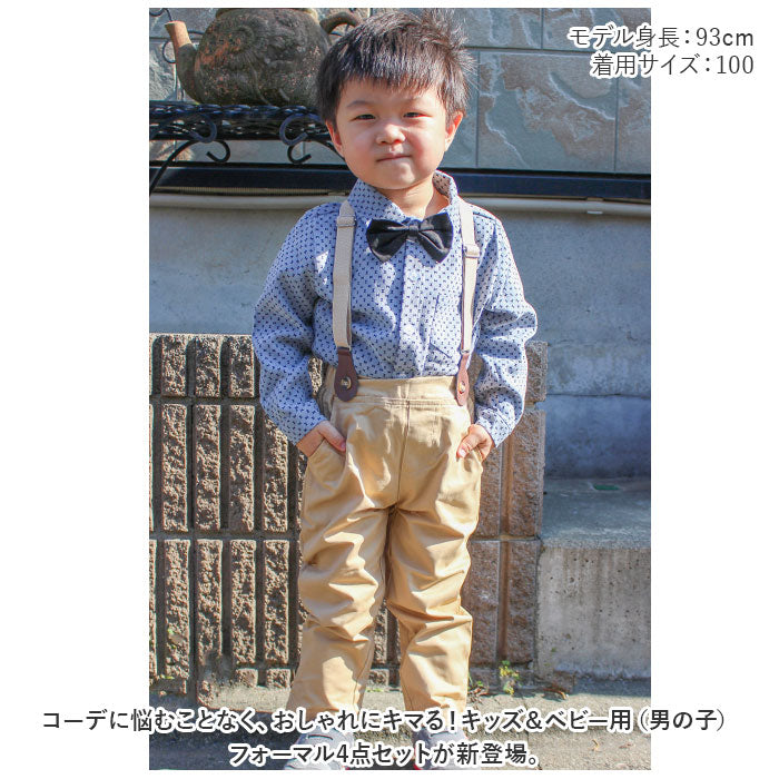 ベビー フォーマル 男の子 長袖 通販 ベビー服 赤ちゃん キッズ セット 上下セット シャツ 蝶ネクタイ リボン パンツ ズボン サスペンダー ズボン吊り パンツセット 子供服 発表会 卒園式