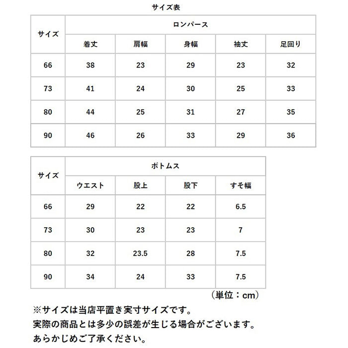 ・ロンパースは、頭からかぶって股下のスナップボタンで着脱。おむつ替えの際に、洋服を脱がす必要なし◎パンツもホックやファスナーなどがないデザイン。
