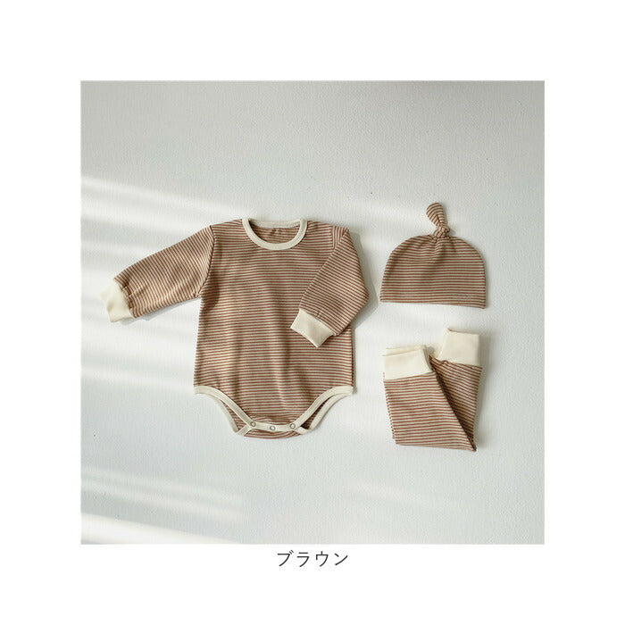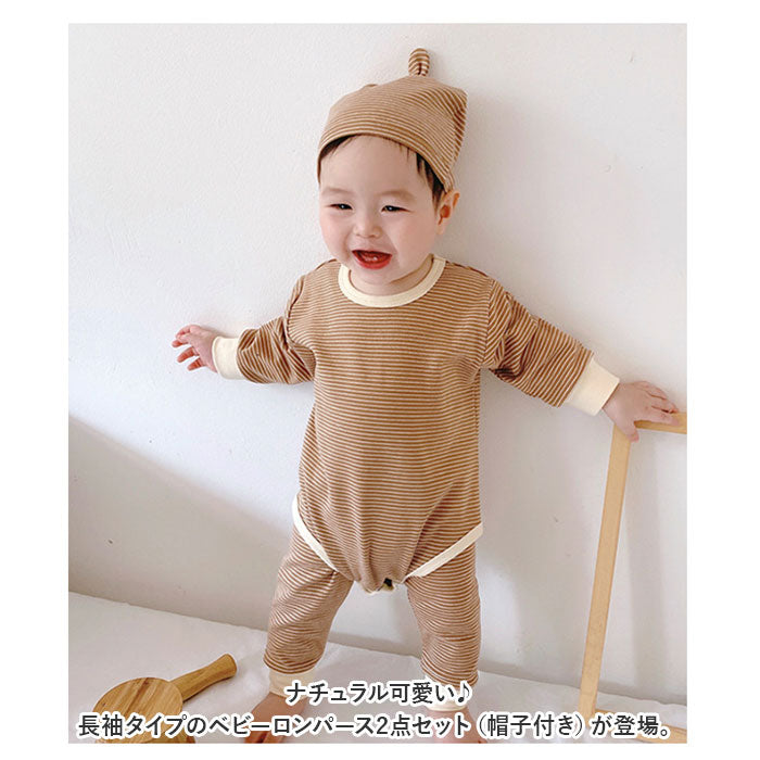 ・ナチュラル可愛い♪長袖タイプのベビーロンパース2点セット(帽子付き)が登場。