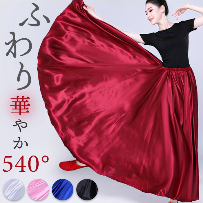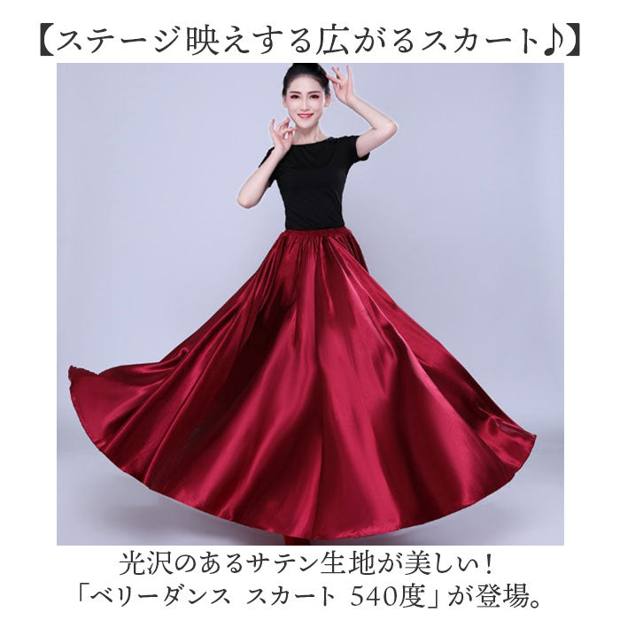 ベリーダンス スカート 540度 通販 ダンス衣装 ロングスカート フレアスカート ベリーダンス衣装 ベリーダンススカート ダンススカート レッスン着 サテンロングスカート フレア ロング