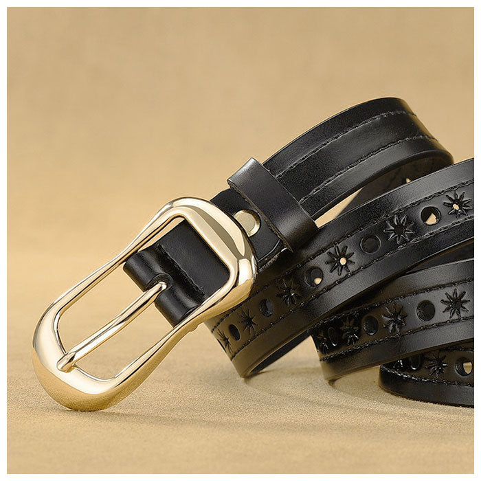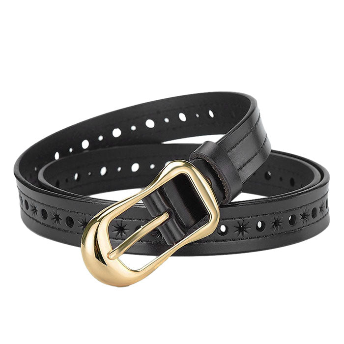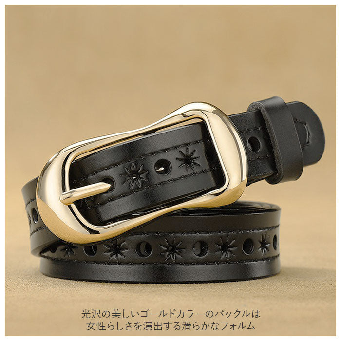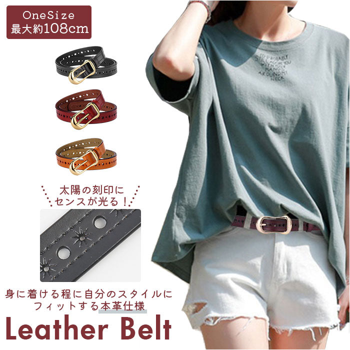 ・ライン状に並ぶ太陽の刻印に、センスが光る!シンプルで個性的なレディースベルトが新登場。