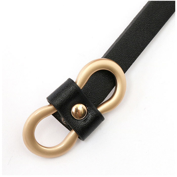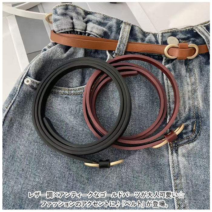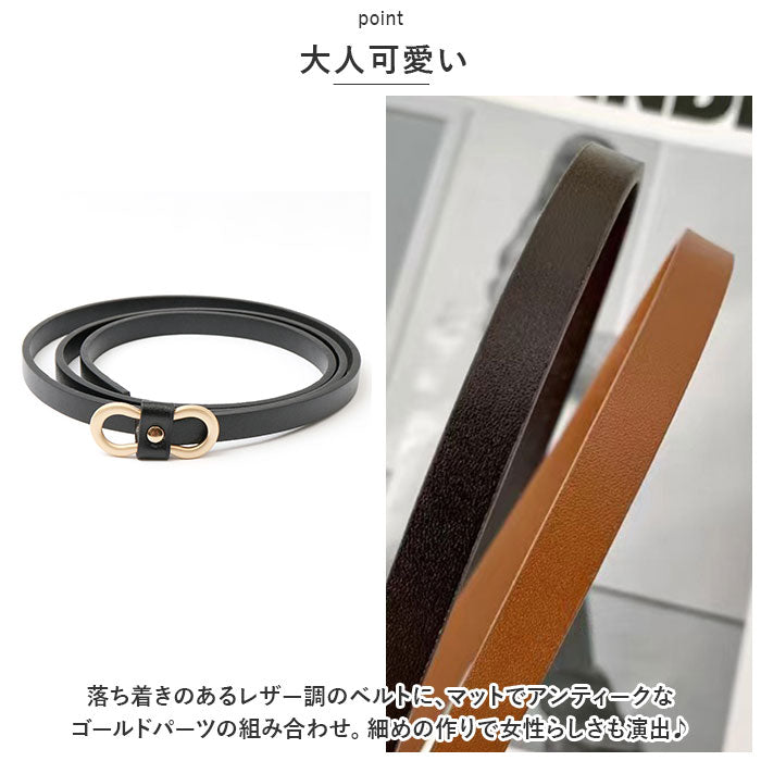 ・落ち着きのあるレザー調のベルトに、マットでアンティークなゴールドパーツの組み合わせ。細めの作りで女性らしさも演出♪
