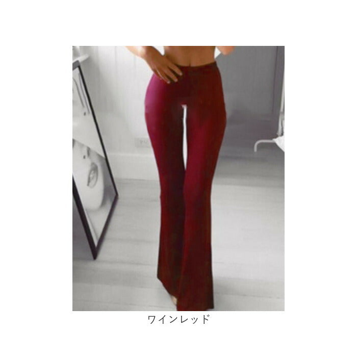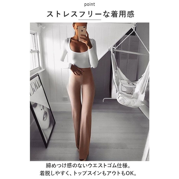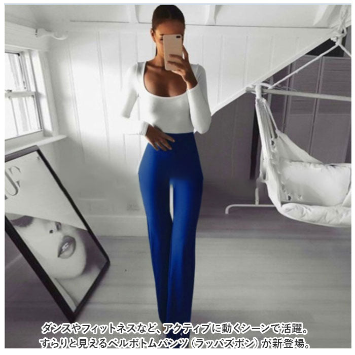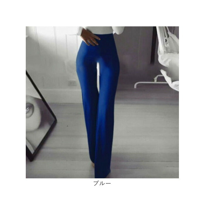 ベルボトムレディース 通販 ベルボトムパンツ ブーツカットパンツ ストレッチパンツ ヨガパンツ ロング パンツ ボトムス ズボン 無地 シンプル ウエストゴム 薄手 伸縮性 フレア スリム