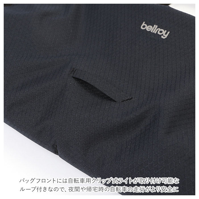 ・バッグフロントには自転車用クリップ式ライトが取り付け可能なループ付きなので、夜間や帰宅時の自転車の走行がより安全に。