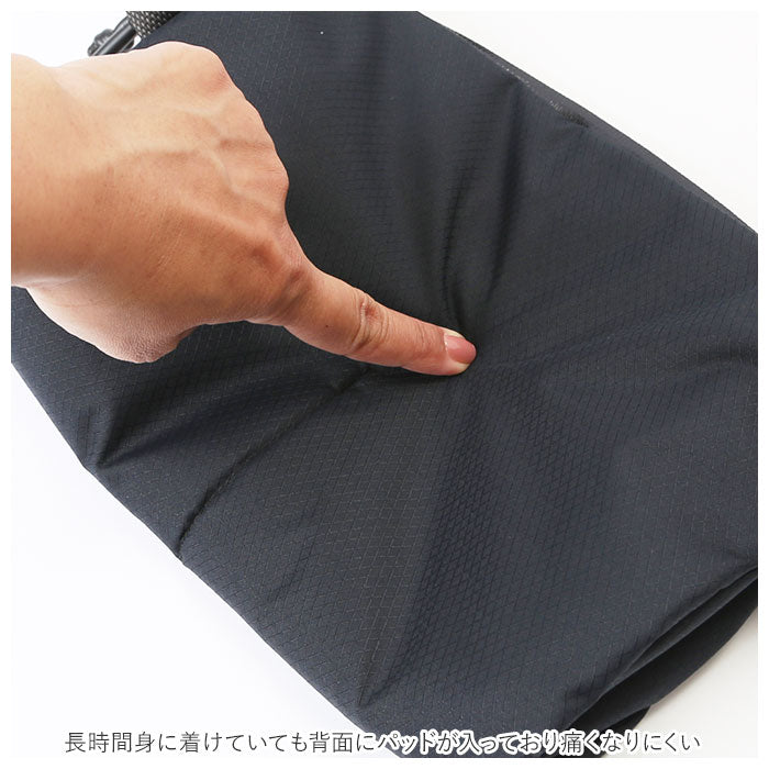 ・生地は「bellroy(ベルロイ)」が使用する他素材の1/3の軽さと耐久性があるリップストップ素材。再生ペットボトルを100%使用し耐水性も◎