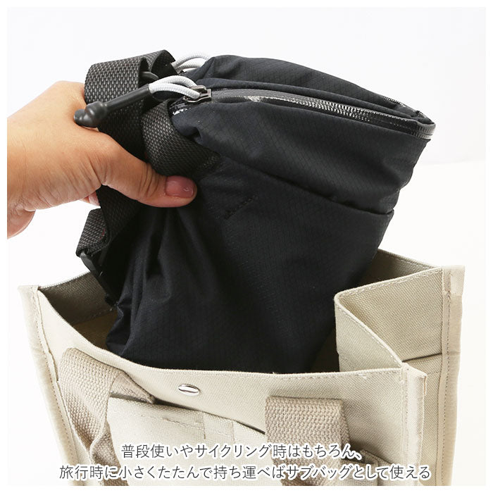 ・普段使いやサイクリング時はもちろん、旅行時に小さくたたんで持ち運べばサブバッグとして使える。