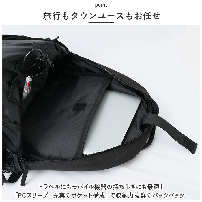 ・トラベルにもモバイル機器の持ち歩きにも最適!「PCスリーブ+充実のポケット構成」で収納力抜群のバックパック。