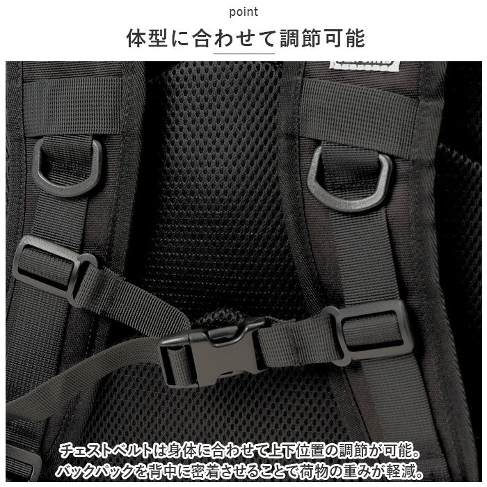 ・通気性がよくムレを軽減する「背面メッシュパッド」+ショルダーベルト裏側の「低反発メッシュクッション」でいつでも快適。