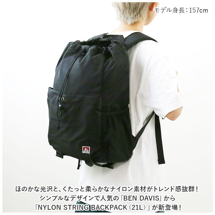 ・ほのかな光沢と、くたっと柔らかなナイロン素材がトレンド感抜群!シンプルなデザインで人気の「BEN DAVIS」から「NYLON STRING BACKPACK(21L)」が新登場!