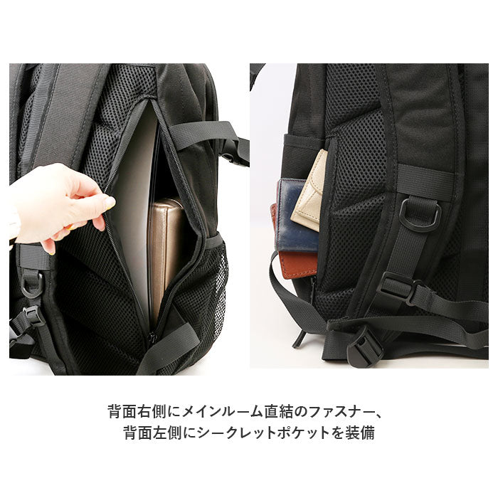 ・背面右側にメインルーム直結のファスナーを装備。背負ったままでも中の荷物にアクセス可能!