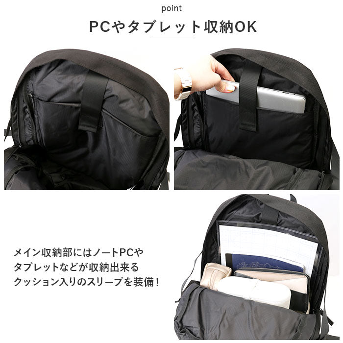 ・メイン収納部にはノートPCやタブレットなどが収納出来るクッション入りのスリーブを装備!大切な機器をしっかりガード!