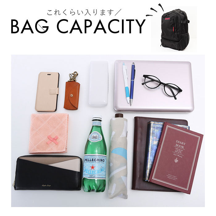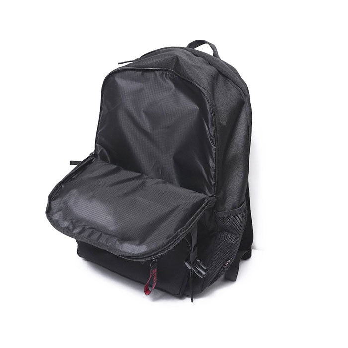 ・両サイドには折りたたみ傘や500mlペットボトルがちょこんと差し込めるメッシュオープンポケット×2を装備。