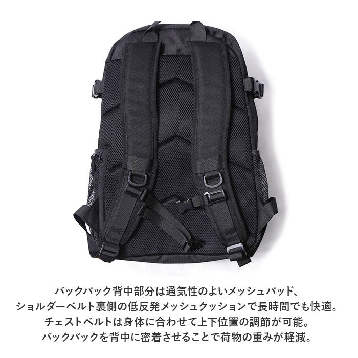 ・バックパック背中部分は通気性のよいメッシュパッド、ショルダーベルト裏側の低反発メッシュクッションで、長時間背負うときでも快適。