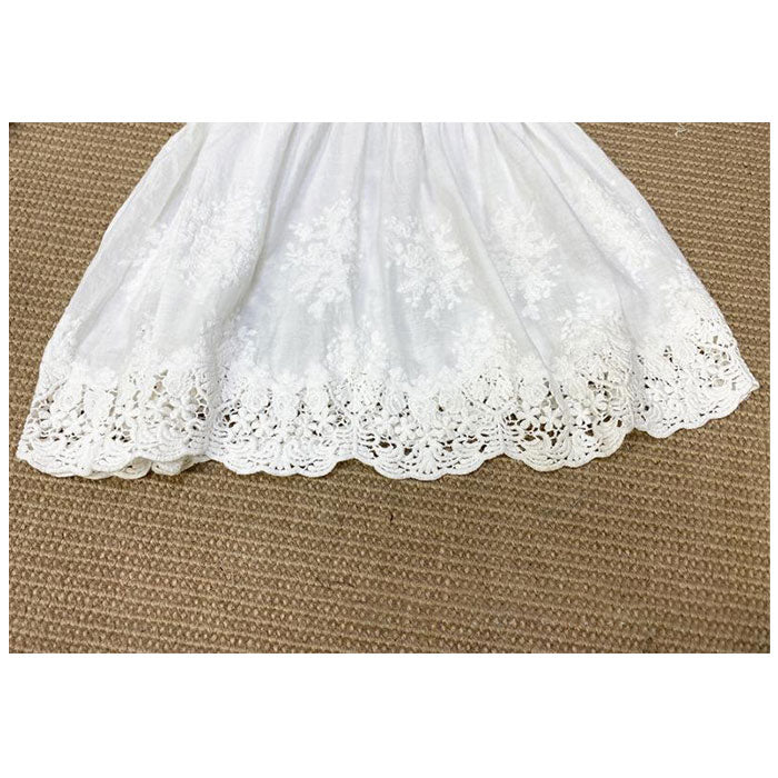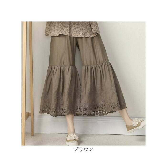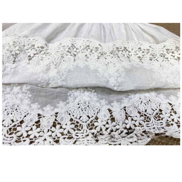 ・ナチュラルな風合いの生地に、刺繍やレースデザインをプラス。ガーリーな雰囲気がありつつ、甘すぎない印象に。