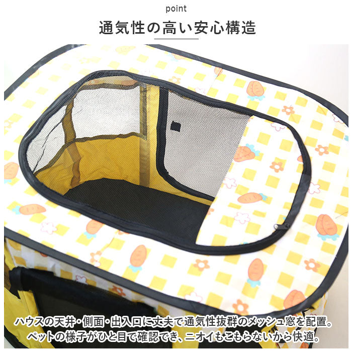 ・ハウスの天井・側面・出入口に丈夫で通気性抜群のメッシュ窓を配置。ペットの様子がひと目で確認でき、ニオイもこもらないから快適。