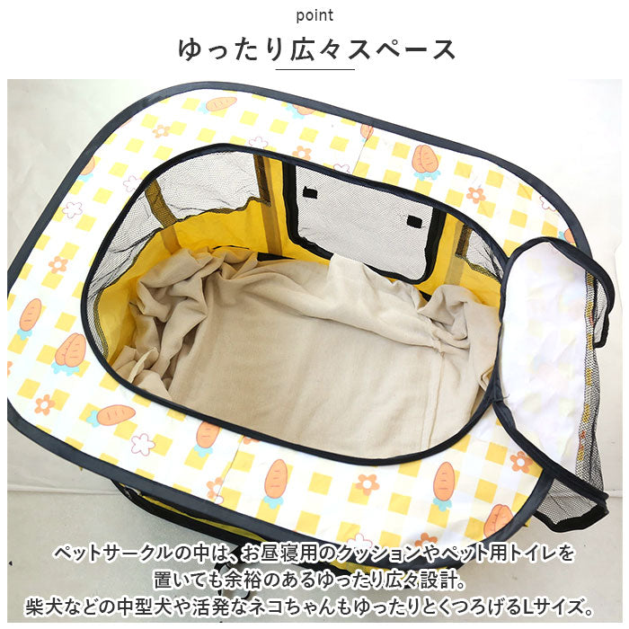 ・ワンちゃんもネコちゃんも、広々ゆったりリラックス♪パッと広がる「折りたたみ式ペットサークル(Lサイズ)」
