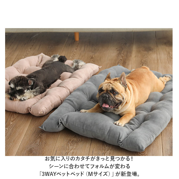 ・お気に入りのカタチがきっと見つかる!シーンに合わせてフォルムが変わる「3WAYペットベッド(Mサイズ)」が新登場。