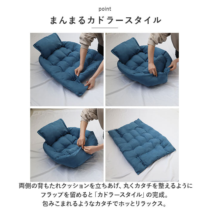 ・スナップボタンの留め方で、「クッション」「ソファ」「カドラー」それぞれのカタチにスタイルチェンジできる3WAY仕様。